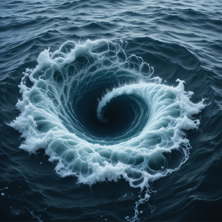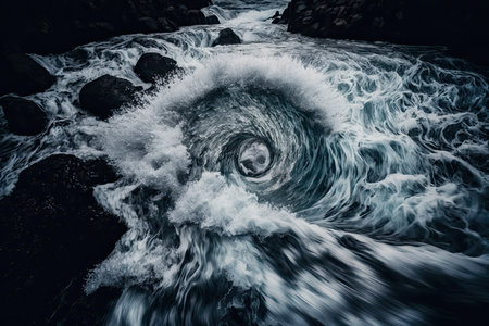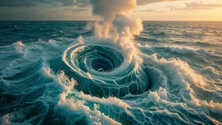Majestic Oceanic Whirlpool Capturing the Raw Force of Nature with Swirling Water and Foamy Waves
