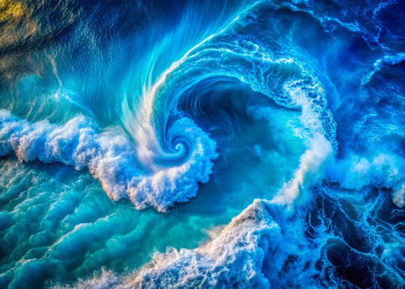 A captivating aerial view of swirling ocean waves captures the raw power and beauty of nature. The dynamic movement showcases the intricate patterns and energy of water.