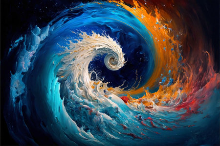 Fiery whirlpool in dark ocean, swirling vortex, abstract art, nature background, for fantasy design