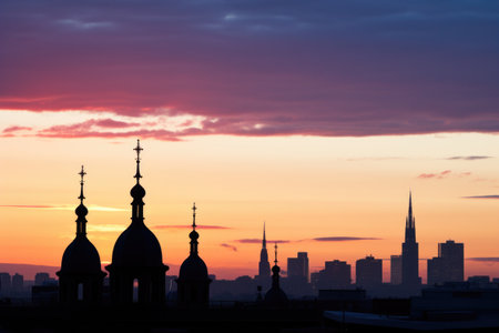 skyline featuring a mix of religious building silhouettes, created with generative ai