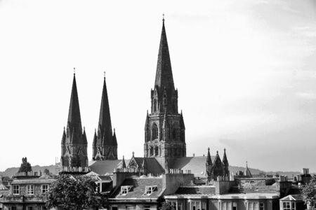 Majestic Gothic cathedral with soaring spires and ornate facade standing tall in the historic cityscape of a European destination