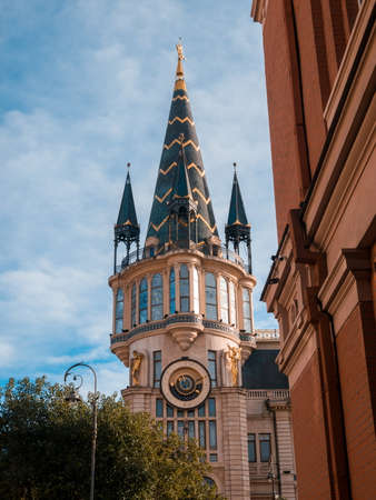 BATUMI, GEORGIA- January 11, 2019: Modern architecture in Batumi,Astronomical clock. Georgia