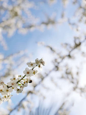 Image blurred background blooming branch of a plum in the spring on a bright sunny day