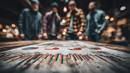 Craftsmen at work, creating unique patterns with paint and wood generated by artificial intelligence