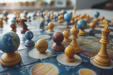 A chess game played with planets as pieces. --no face --chaos 25 --ar 3:2 --style raw --stylize 750 --v 6 Job ID: 24476344-997b-4478-9f40-22a7cb458893