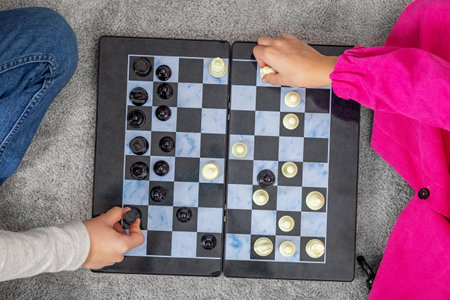 This close-up shot showcases a game of chess in progress, with detailed shots of the chess pieces strategically placed on the checkered board. The black and white pieces are in the middle of a strategic battle of wits and tactics.