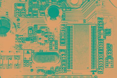 Circuit board. Electronic computer hardware technology components. Motherboard digital science grunge background.