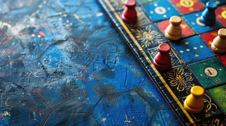 A close up view of a single dice placed on a board game, showing the numbers on its faces.