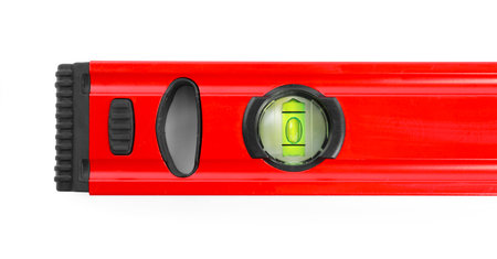 Close up of spirit level meter tool red color On Off buttons, motion, selective focusing.