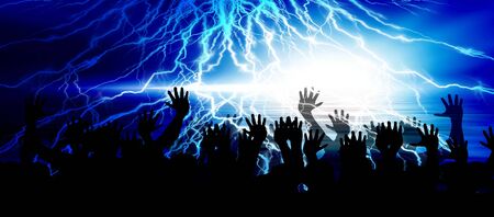 Hand shooting out a bolt of lightning - Dark and mysterious, isolated on black