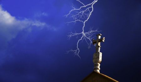Church cross with lightning