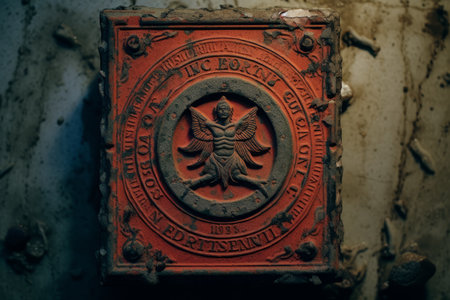 Golden masonic symbol with compass and square on a stone wall, representing the concepts of freemasonry, brotherhood, and secret societies