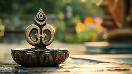 Sacred Jain symbol of Om in a peaceful temple setting, no people, clean background, space for text