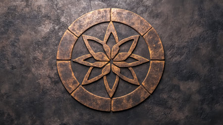 Stone surface bearing circular ancient rune design, minimalist central star pattern radiating mystical historical symbolism with textured background highlighting intricate details