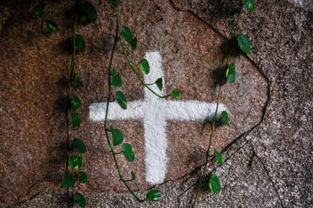 Cross on a concrete wall. Christian religion concept. Copy space.