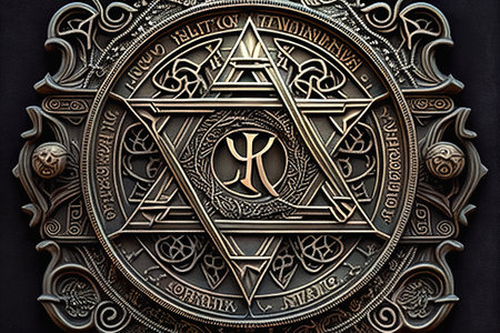Tetragrammaton Symbol: An Image of Divine Power and Protection. The symbol of the four elements is a mystical sign representing the four elements: earth, water, air and fire. Realistic illustration created by Generative AI