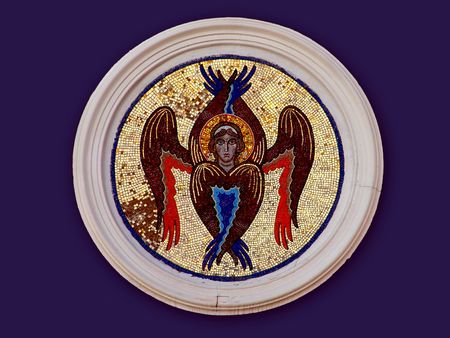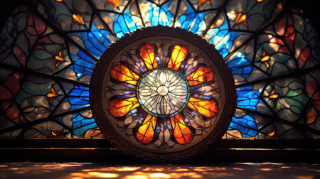 CLUJ NAPOCA ROMANIA DECEMBER 27: Biblical scene on a stained glass window inside the Gothic Roman Catholic Church of Saint Michael built in 1390. On december 27 2003 in Cluj Romania