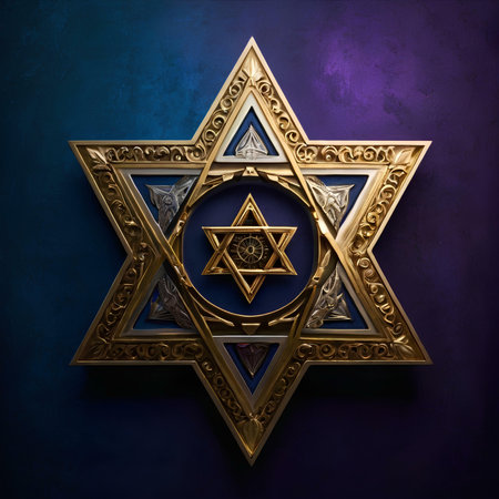 A traditional depiction of the Star of David, a prominent symbol in Jewish culture and heritage. Ideal for discussions on faith, identity, and cultural representation.