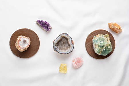 Mystical gemstones collection. Colorful Zen stones with healing properties.