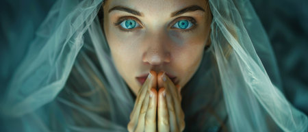 Woman Praying With Her Hands Folded in Devotion and Serenity