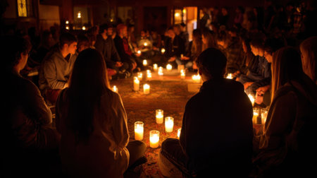 The soft glow of candlelight casting a warm and serene atmosphere on the group of worshippers gathered in their Church Prayer Circle