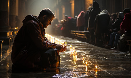 person kneeling in repentance and contrition, seeking forgiveness and renewal through prayer and faith. Generative AI
