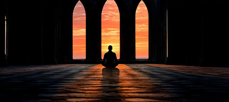 Serene Silhouette of a Person Meditating in Nature, Embracing Tranquility and Inner Peace at Sunset