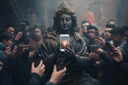 Tourists watching the Kecak Fire Dance in the Pura Luhur Uluwatu Temple amphitheater, taking photos and videos with smart phones