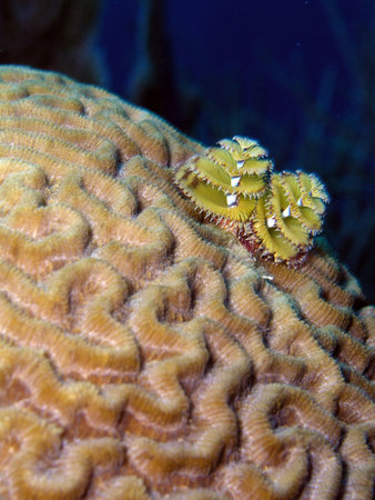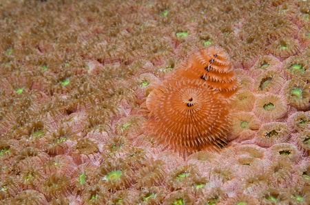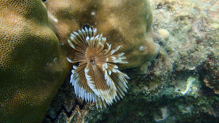 Christmas Tree Worm on coral reef off Bonaire, Dutch Caribbean