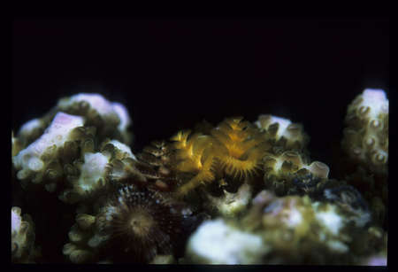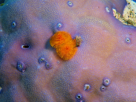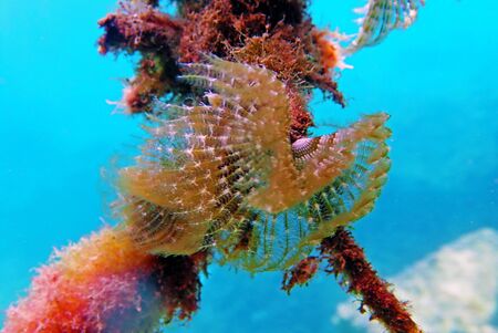 The sea worm (Spirobranchus giganteus) is like an underwater flower when it spreads its tentacles. Bright yellow color.