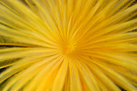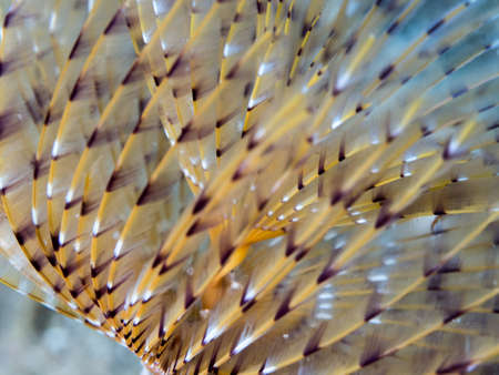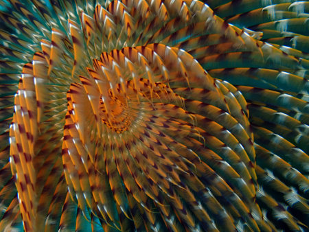 Marine polychaete Mediterranean fanworm or feather duster worm, European fan worm (Sabella spallanzanii) extreme close-up undersea, Aegean Sea, Greece, Halkidiki
