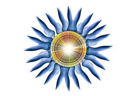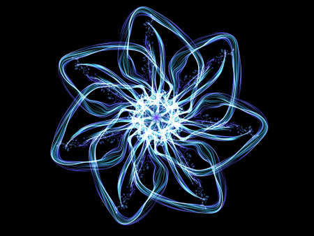 Fantasy artistic flower with lighting effect. Beautiful shin. Futuristic bloom. An abstract computer generated modern fractal design on white background. Digital art design element.