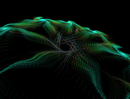 Abstract fractal colorful pattern over black background. Glowing neon pattern