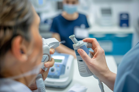 Healthcare professionals in medical settings demonstrate the proper use of inhalers, devices commonly used for treating asthma and respiratory conditions