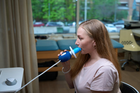 Woman Using Portable Spirometer