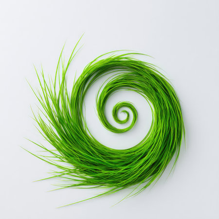 A stunning representation of nature's elegance, this spiral of vibrant green grass on a white background captures the essence of organic beauty and eco-friendly design inspiration.