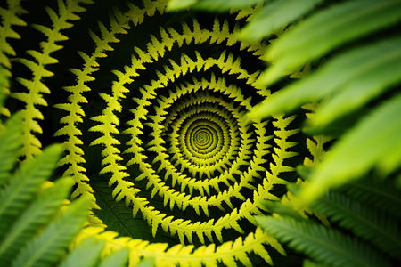 The intricate spiral pattern of an unfurling fern illustrating the natural beauty and perfection of nature's design.