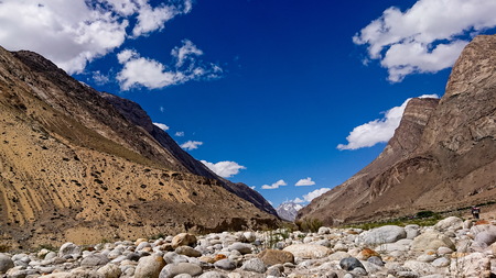 Landscape of K2 trekking trail in Karakoram range, Trekking along in the Karakorum Mountains in Northern Pakistan