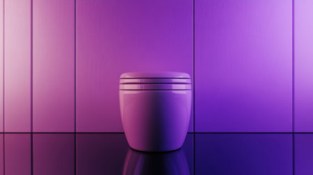 Stylish and modern bathroom scene features a sleek toilet against a vivid purple wall with a reflective surface, creating a luxurious ambiance.