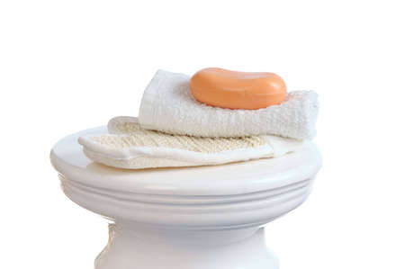 soap, towel white background and column