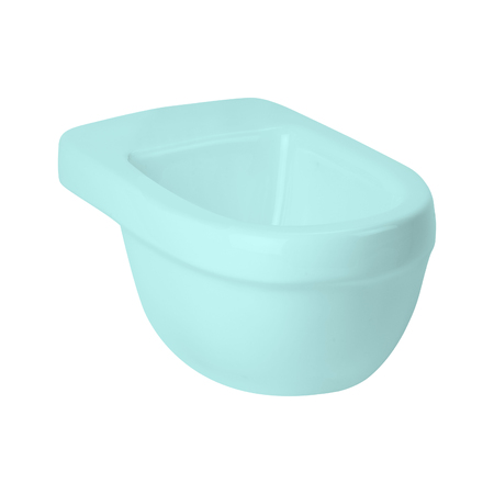 Open portable toilet bowl on gray background