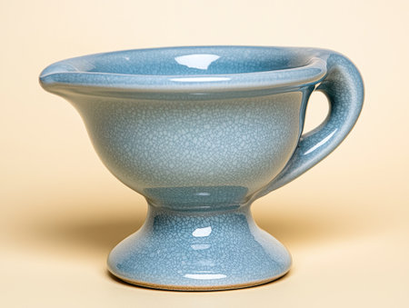 Elegant blue ceramic bowl with handle on pedestal base
