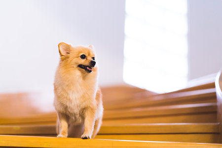 Pomeranian is looking awake, cheerful, curious to see the small barking, good and beautiful