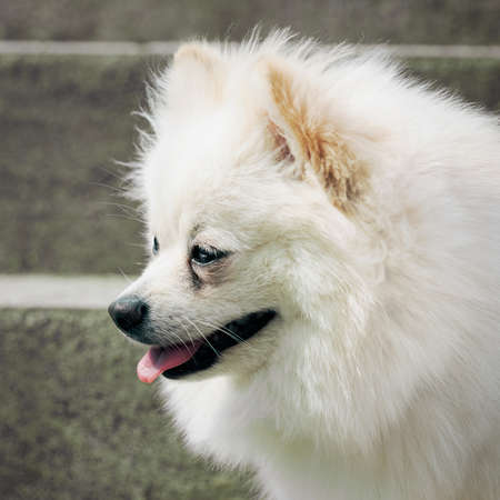 Portrait of a dogs head. Beige Pomeranian in profile. Shallow depth of field.