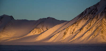 norway landscape ice nature of the glacier mountains of Spitsbergen Longyearbyen Svalbard arctic ocean winter polar day sunset sky