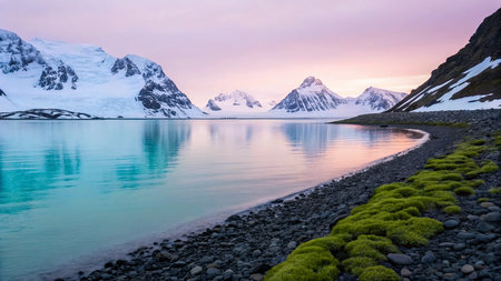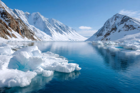 Breathtaking Panoramic View of the Arctic Majestic Snow-Capped Mountains and Glacial Reflections