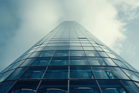 Minimalist architectural photo of skyscrapper in cloudy weather