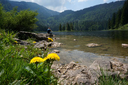 Lake Erlaufsee and Gemeindealpe mountain in Lower Austria, Mostviertel