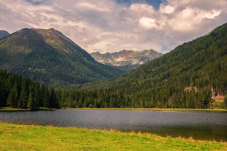 Austria Alps landscape panorama with mountain lake, Etrachsee in Niedere Tauern near Schladming Dachstein