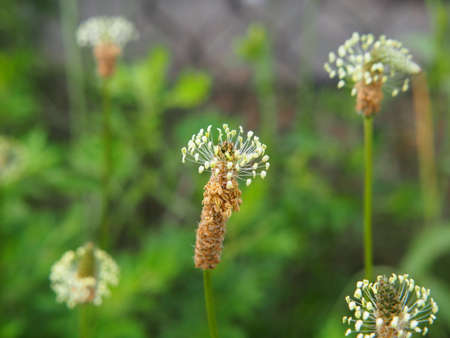 Plantain, Plantago lanceolata, is an important medicinal and medicinal plant with white flowers.